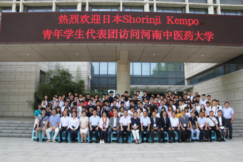 (Article /Guo Wei & Fu Wen-feng; Picture/ Kang Peng-tao) On August 28, 2019, Zong You-gui, President of Shorinji Kempo, took Youth League Students Delegation consisting of 112 people's delegation to visit our university for cultural exchange. Zhang Xiao-ping, minister of Friendship and Exchange between China and Japan of the National Association of Friendships, Li Zhen, deputy director of the Foreign Affairs Office of Henan Provincial Party Committee and vice chairman of the Foreign Friends Association, accompanied visitors. Xu Jiang-yan, member of the Party Committee and Vice-President of the university, met members of the delegation and delivered a speech. The heads of the relevant functional departments of the university attended the welcoming ceremony.